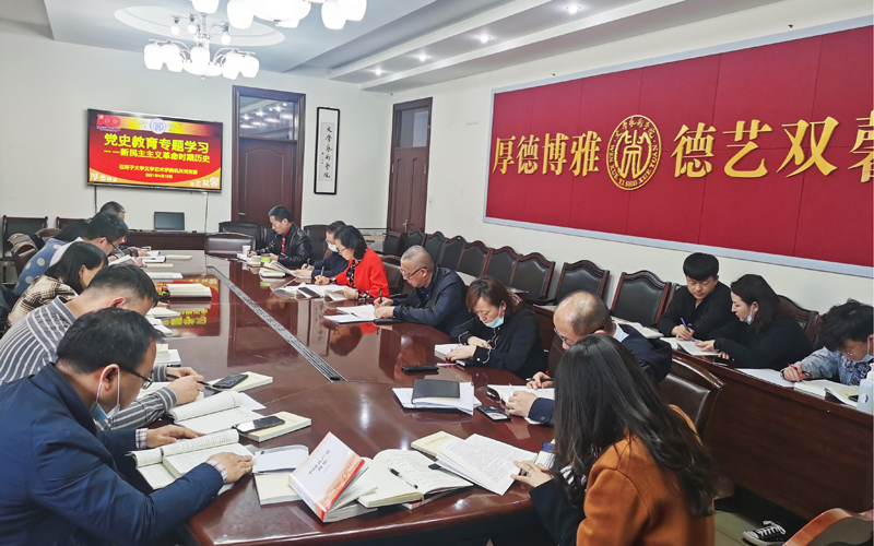 文艺学院机关全体工作人员早早准备好党史学习资料,因为大家事先都有预习,翻开学习材料,书上有用不同颜色的笔圈划出来的内容。在学习时,学院党委书记陈玲要求大家用心用情用功学好党史,原原本本学、融会贯通学、联系实际学、交流研讨学,确保“十四五”开好局、起好步,陈玲同志指出开展党史学习教育的重点在于学懂弄通做实习近平新时代中国特色社会主义思想,要用理论更好地指导我们的实际工作。学院党委班子成员参加了机关党支部党史专题学习。
