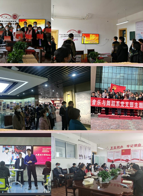 今年是中国共产党成立100周年,党史学习教育是纪念建党100周年的重要活动之一,在学院党委的领导下,按照相关工作安排及制定的学习计划,音乐与舞蹈系党支部以多种形式开展党史学习教育活动,从“专题学习研讨” “学党史,促团结——民族团结一家亲”活动“参观大学校史馆”“党史知识竞答”到观看“兵团精神育人——名师思政导航”讲座。紧紧围绕学懂弄通党的创新理论,扎扎实实开展党史学习教育,引导党员同志学史明理、学史增信、学史崇德、学史力行。